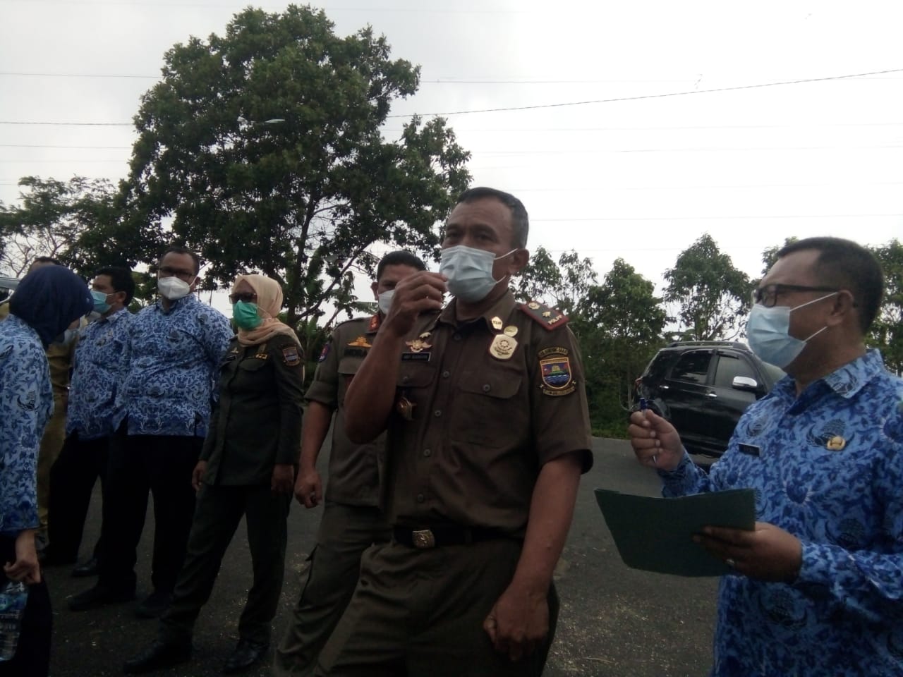 Terlihat sejumlah Aparatur Sipil Negara (ASN) tengah meninjau lokasi penebangan liar, tepatnya di Jalan Mekarsari – Ngamprah, Gerbang selatannya Pemkab Bandung Barat, Senin (17/5/2021).