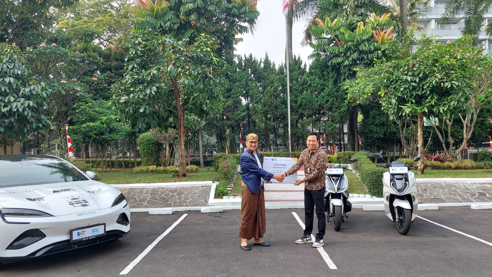 BANDUNG, – Dalam mendukung Net Zero Emission (NZE), serta penciptaan ekosistem ramah lingkungan dan pemanfaatan sumber energi terbarukan, Bank Syariah Indonesia (BSI) memberikan bantuan berupa hibah 1 unit kendaraan mobil liatrik BYD, serta 2 unit sepeda motor elektrik kepada Balai Besar Standardisasi dan Pelayanan Jasa Industri Bahan dan Barang Teknik (BBSPJIBBT) atau disebut juga Balai Besar Bahan dan Barang Teknik (B4T) Kementerian Perindustrian RI.