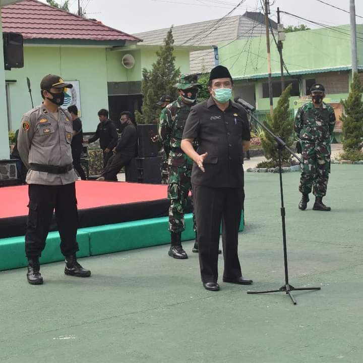 KARAWANG- Setelah memimpin Apel Bhakti Siliwangi Manunggal Satata Sariksa (BSMSS) KODIM 0604/Karawang TA 2020, Pjs Bupati Karawang Dr. Ir. Yerry Yanuar MM memberikan arahan satuan tugas (satgas) Pelaksanaan Operasi Yustisi Penerapan Disiplin dan Penegakan Hukum Protokol Kesehatan Pencegahan dan Pengendalian Covid-19 di Halaman Makodim 0604 Karawang, Jumat (16/10/2020) pagi.