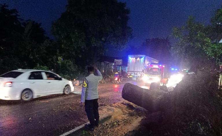 “Peristiwa pohon tumbang terjadi pukul 2.30 Wib dini hari di satu titik tepatnya di jalur utama Cirebon-Bandung, tepatnya di depan Stasiun GAS PGN Garawangi-Bongas Blok Pajagan Desa Garawangi Kecamatan Sumberjaya Kabupaten Majalengka namun tidak sampai ada korban jiwa,” ujar Kapolres Majalengka Polda Jabar, AKBP Syamsul Huda melalui Kapolsek Sumberjaya AKP Endoy Sahru.