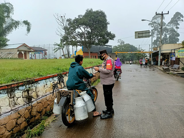 Cegah Covid-19, Binmas Polsek Pangalengan Polresta Bandung Bagikan Masker