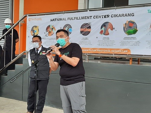 Gubernur Jabar, Ridwan Kamil berkesempatan meninjau werehouse Tanihub di kawasan industri Jababeka Bekasi, sebagai upaya dalam pengembangan dan pembentukan  program petani milenial di Provinsi Jabar.