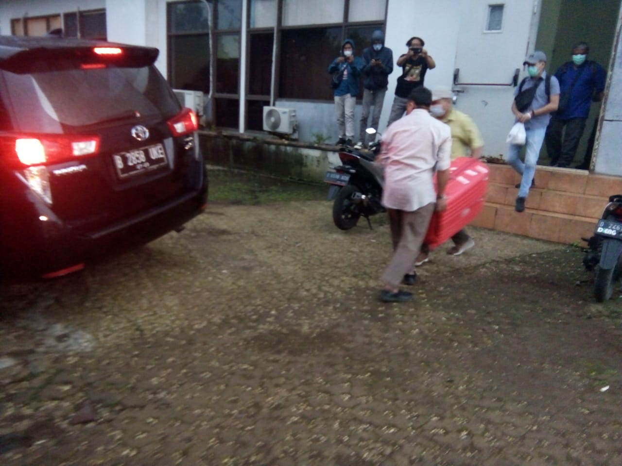 Usai memeriksa Dinas Kesehatan (Dinkes KBB), terlihat beberapa penyidik KPK membawa satu dus air mineral, satu ransel berwar hijau armi dan satu koper hitam kecil lalu dimasukan kedalam mobil, sekitar pukul 16.51 WIB.