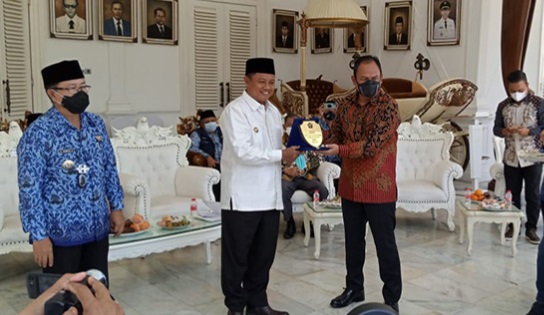 CIANJUR–Wakil Gubernur Jawa Barat (Jabar) Uu Ruzhanul Ulum dan Bupati Cianjur Herman Suherman mendapat penghargaan Peduli Jurnalis dari Persatuan Wartawan Indonesia (PWI) Jabar.Pada puncak acara peringatan Hari Pers Nasional 2021 Tingkat Provinsi Jabar di Kantor Setda Kabupaten Cianjur, Rabu (17/3/2021).