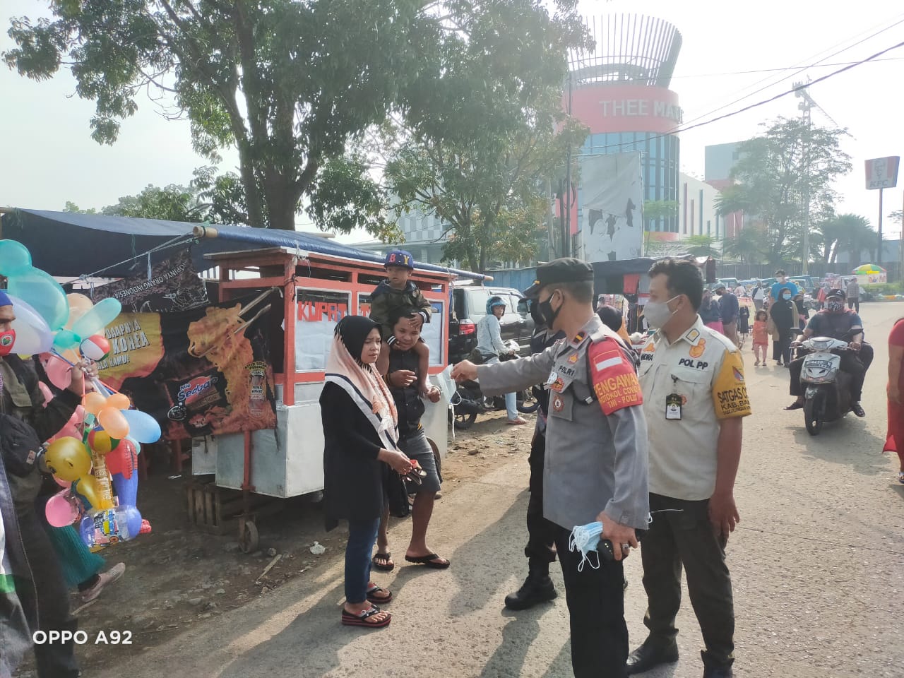 BANDUNG – Polsek Solokan Jeruk Polresta Bandung bersama Satpol-PP dan TNI menggelar Operasi Yustisi Penegakan Disiplin Protokol Kesehatan dan Patroli PPKM di wilayah Polresta Bandung Polda Jabar, Minggu (18/4).