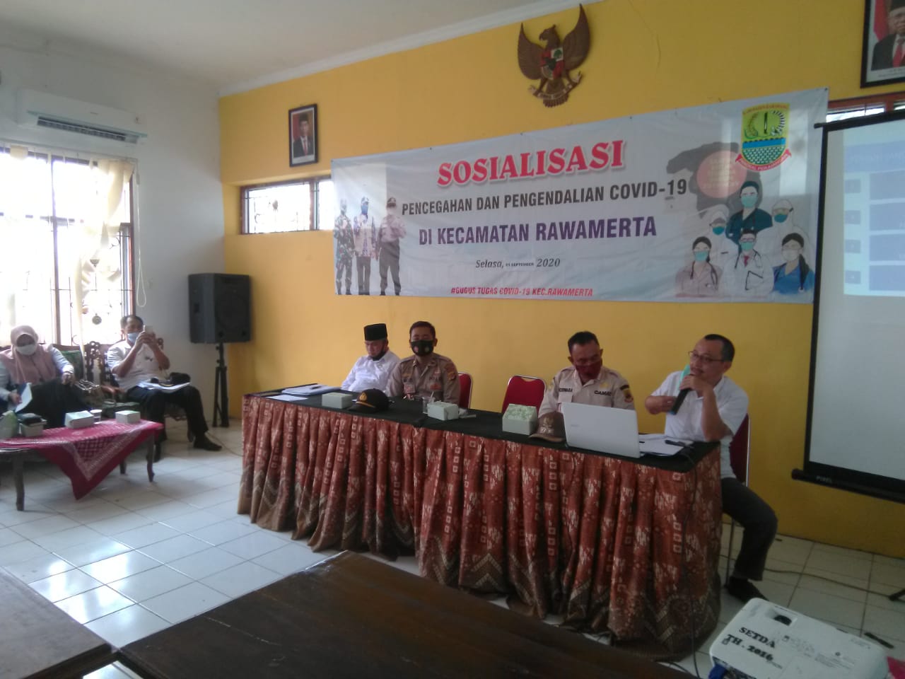 Sosialisasi Pilkades tersebut dilaksanakan di Kantor Kecamatan Rawamerta langsung dipimpin oleh Kepala Dinas DPMD Agus Mulyana.