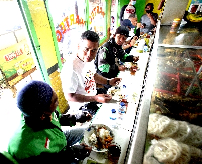 Bahkan Direksi berkesempatan sarapan pagi bersama Driver Ojek Online yang kebetulan mengunjungi Warteg 89.
