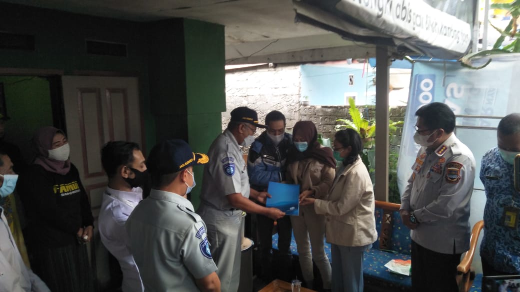 BANDUNG — Jasa Raharja Jawa Barat menyerahkan bantuan santunan kepada keluarga Oke Dhurrotul Jannah (24), pramugari NAM Air yang turut menjadi korban jatuhnya pesawat Sriwijaya Air SJ-182, Senin (18/1/2021).