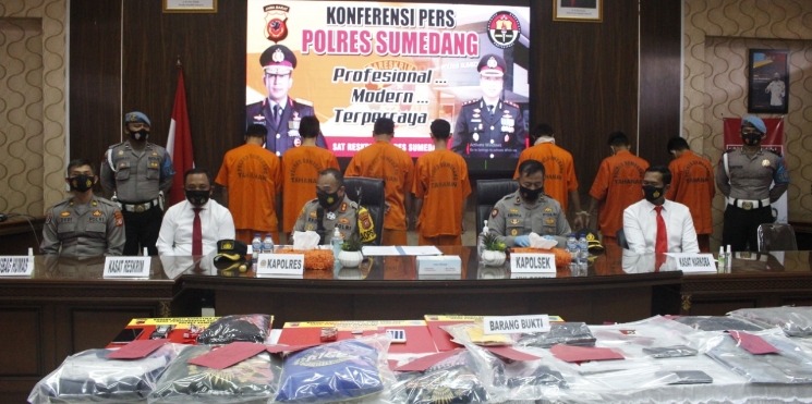 “Tiga orang tersangka, berhasil ditangkap yaitu Agung Rohman alias Tile, Deri Sutisna alias Komeng, dan Nurcahyadi alias Ute. Sedangkan, pelaku penusuk yang mengakibatkan korban meninggal dunia, atas nama Wisnu alias Black, yang merupakan warga Kota Bandung, sampai saat ini masih buron,” kata Eko saat jumpa pers di Aula Tribata Mapolres Sumedang, Selasa (19/01/2021).