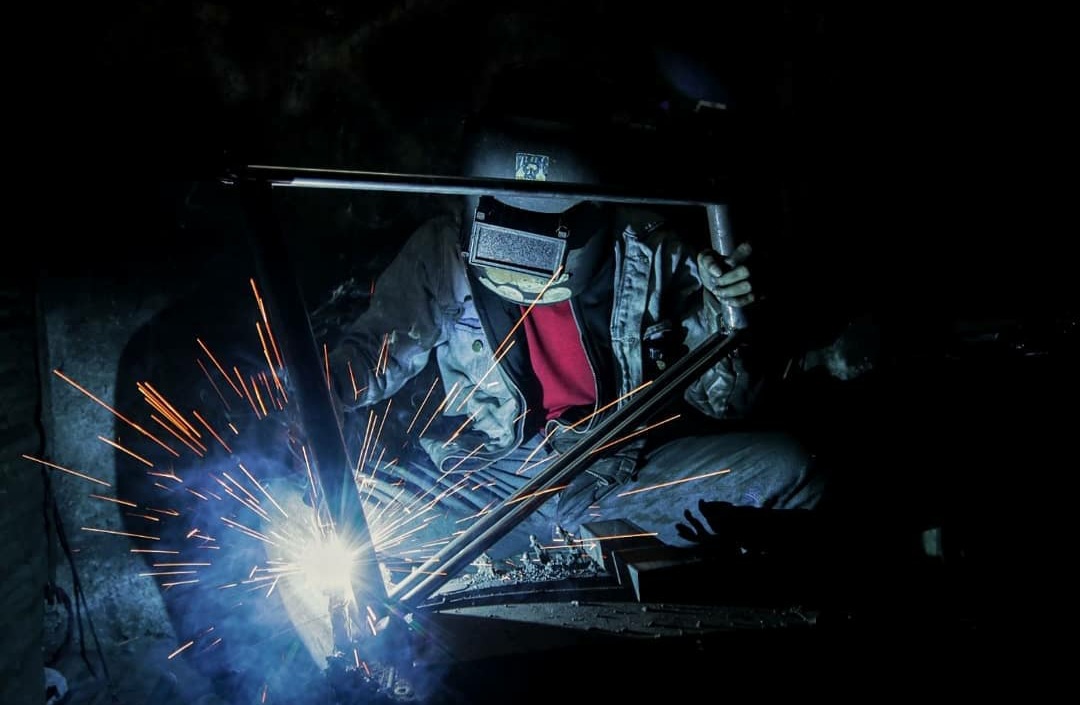 Foto tersebut menggambarkan seorang pekerja yang tengah mengelas salah satu komponen sepeda jenis Minivelo di bilangan Katapang, Kabupaten Bandung. Sang pekerja adalah salah satu pihak yang mendulang rezeki dari menjamurnya hobi bersepeda selama pandemi.