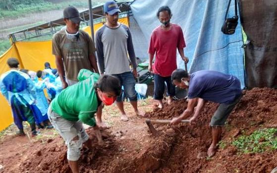 CILEUNYI, — Untuk memastikan penyebab kematian Dina Yuniasari (27) warga Kp.Sukamulya RT 01/RW 13 Desa Cinunuk, Kec. Cileunyi, Kabupaten Bandung, tim fortensik akhirnya membongkar makam dan mengankat jasad korban untuk diautosi, Jumat (19/2/2021).