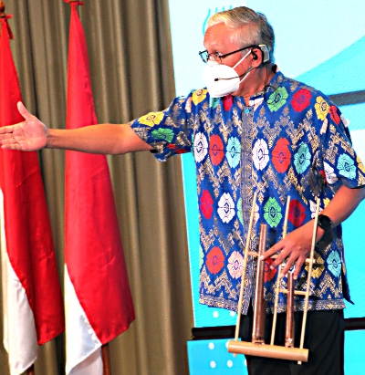 “Aktivitas yang cenderung “Bermain” meniadakan kesan menceramahi apalagi menggurui. Pelatihan ini menjadi terasa sebuah hiburan atau malah dianggap pertunjukan. Kesan ini tidak mengurangi bobot pelatihan, tetapi nilai lebih karena peserta nyaman sementara pesan-pesan dan muatan materi tetap tersampaikan dengan efektif.” ujar Joko Angklung Nugroho, ketika memberikan motivasi kepada peserta Sinergitas Pengantar Kerja Pusat Dalam Era Digitalisasi di Hotel Novotel Bogor Rabu (16/6/2021)