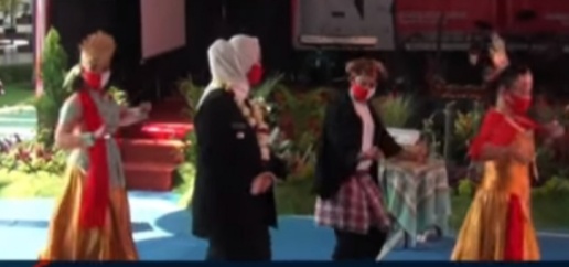 BN KARAWANG – Bupati Karawang Celica Nurachdiana berlenggok menunjukan tarian goyang karawang khas ciptaanya yang diberi nama goyang karawang tandang dalam acara di Lapas Kelas IIA Karawang .