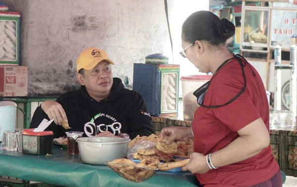 JAKARTA, – Ketua MPR RI Bambang Soesatyo dalam tayangan _UNDERCOVER_ di Kanal Youtube _’Bamsoet Channel’,_ terlihat menyambangi sebuah warung nasi pecel di kawasan Kalibata, Sabtu (15/8/2020). Dialog ringan tentang usaha kaki lima yang makin moncer di era pandemi Covid-19 bersama pemilik Warung Nasi Pecel Ayu, Watiem asal Grobokan, Jawa Tengah.