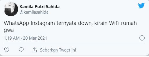 Tagar #WhatsAppDown dan #InstagramDown pun membanjiri Twitter yang sering digunakan netizen untuk berkeluh kesah jika ada layanan media sosial yang mengalami kendala.Sementara itu, banyak pula pengguna Instagram yang mengeluhkan bahwa mereka tidak bisa memperbarui news feed. Bahkan beberapa yang lainnya mengaku tidak bisa log-in.