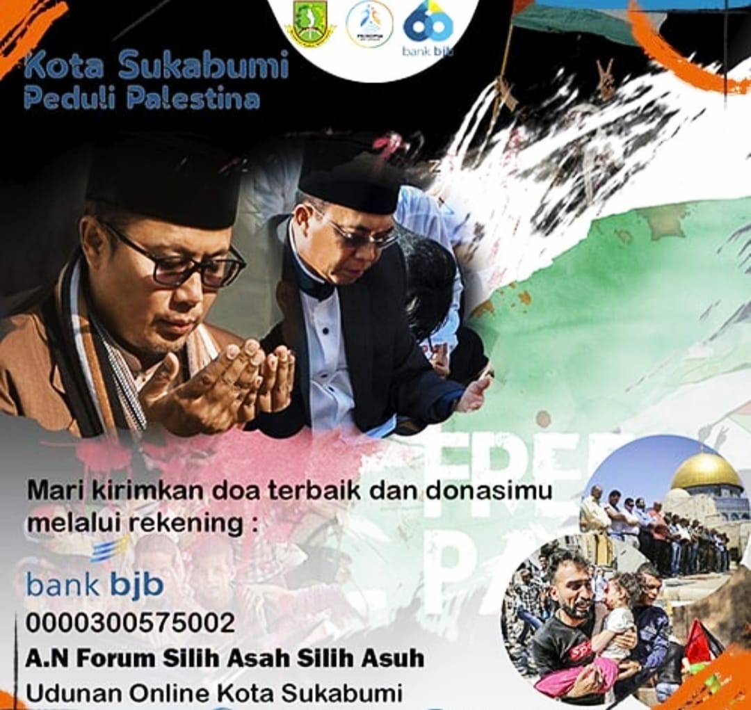 Donasi untuk Palestina ini dihimpun via bank bjb 000 300 575 002 Forum Siih Asah Asih Asuh Udunan Online Kota Sukabumi.