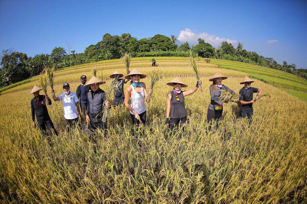 Usai makan, aktivitas dilanjutkan dengan memanen padi organik yang menjadi ikon Kampung Ciharashas, Mulyaharja, Bogor Selatan.