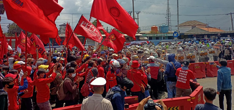 KAB. BANDUNG – Ribuan Buruh dan Mahasiswa yang tergabung dalam Front Rakyat Membatalkan Omnibus Law (Formo) kembali turun ke jalan, berunjuk rasa menolak Omnibus Law , akibatnya Jalur Bandung – Garut macet total di Rancaekek, Kabupaten Bandung, Jawa Barat Selasa (20/10)/2020.
