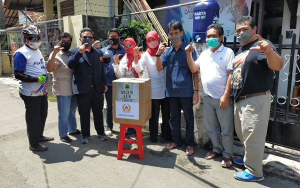 Sekretaris umum (Sekum) KONI Kota Cimahi, Akhmad Sobarna, secara simbolis 1000 masker tersebut diberikan kepada Ketua RW 05 Tsabit Abduloh dan disaksikan oleh penasehat RW DR. Tukino, Ketua Karang Taruna Kelurahan Karang Mekar Yanuar Nurzaman, Kader RW Cucu Haryati, Ibu RW 05 Nita Bety Agustina, tokoh masyarakat dan sejumlah warga.