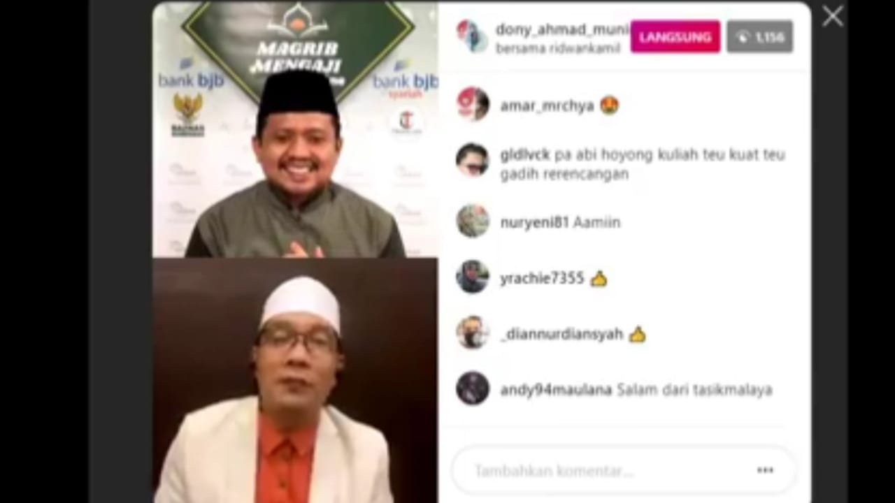 Gubernur Jawa Barat Ridwan Kamil melalui live Instagram mengapresiasi gerak cepat Pemerintah Kabupaten Sumedang kaitan program Magrib Mengaji Online yang sudah mulai dilaksanakan di Sumedang.