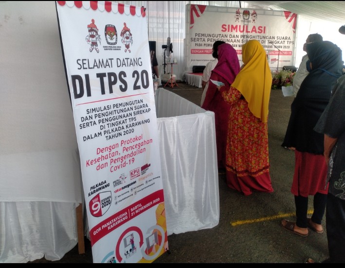 KARAWANG- KPU Kabupaten Karawang hari ini, melaksanakan simulasi pemungutan dan penghitungan suara untuk melihat apa nanti yang akan menjadi evaluasi kita di tanggal 9 desember 2020.