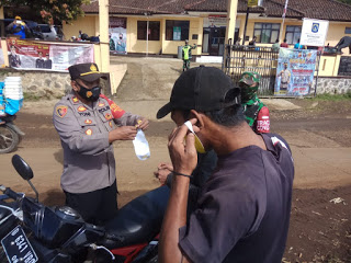 Kegiatan tersebut melibatkan anggota Polsek Kertasari Polresta Bandung ini dilakukan dengan meminta pengendara sepeda motor dan mobil yang belum memakai masker yang melintas di jalan raya Cibeureum-Kertasari di berhentikan.