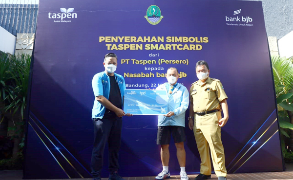 BANDUNG, — bank bjb bekerjasama dengan PT TASPEN (Persero) menggelar acara simbolis penyerahan TASPEN Smartcard dari Kantor Cabang PT TASPEN Bandung kepada perwakilan nasabah bank bjb. Acara tersebut digelar di Outlet bjb Precious, Jalan Teuku Umar, Kota Bandung, Senin (22/03/2021).