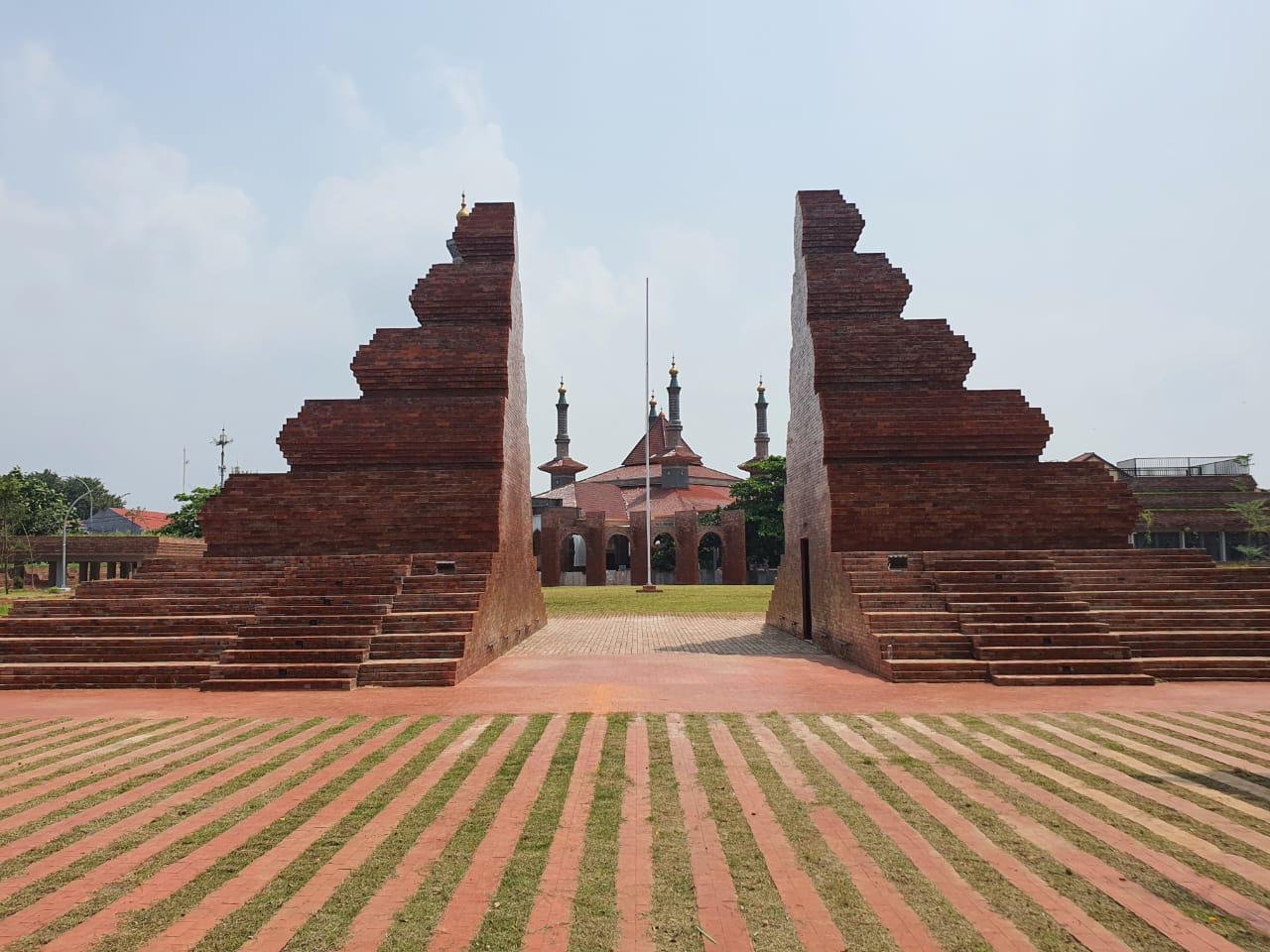 Adapun material bata merah digunakan agar sesuai dengan warna Candi Bentar yang mereka referensikan. Selain itu juga terasa familiar untuk warga Cirebon.
