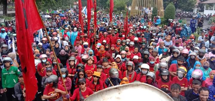 Ketua Serikat Pekerja Seluruh Indonesia (SPSI) Subang, Warlan mnuturkan, Aliansi Buruh Subang bersatu kembali lagi melanjutkan aksi menolak UU Omnibus Law karna ada beberapa Pasal yang memang merugikan para buruh dan masyarakat.