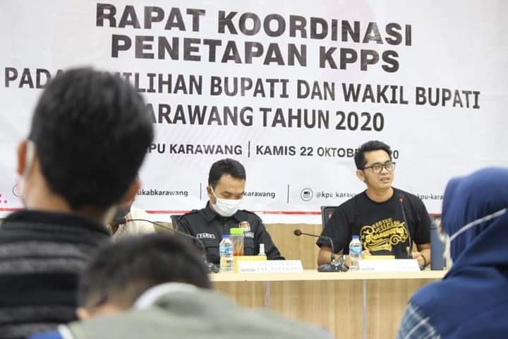 KARAWANG– Komisi Pemilihan Umum (KPU) Kabupaten Karawang me netapkan Kelompok Penyelenggara Pemungutan Suara (KPPS) pada Pemilihan Bupati dan Wakil Bupati Karawang Tahun 2020,. Acara rakor diikuti 30 anggota Panitia Pemilihan Kecamatan (PPK) Divisi SDM dan Parmasos dan digelar dengan menerapkan protokol kesehatan.