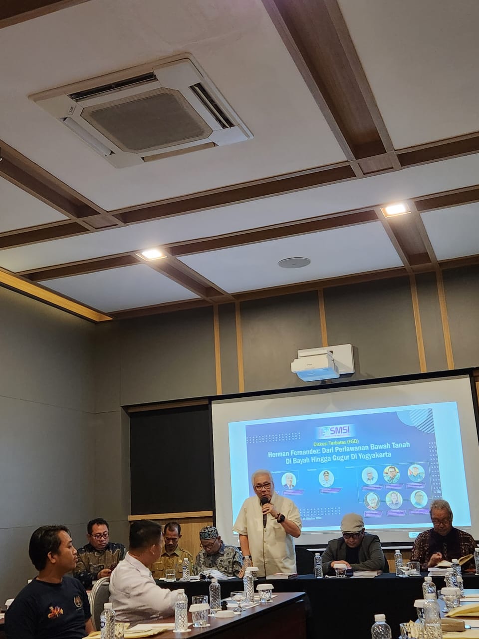 SERANG -Focus Grup Discusion (FGD) dengan mengusung tema Herman Fenandes dari perlawanan bawah tanah di Bayah hingga gugur di Yogyakarta yang menghadirkan narasumber dari tokoh pers nasional dan juga peneliti sejarah, digelar di Hotel Aston Serang, Senin (21/10-24)
