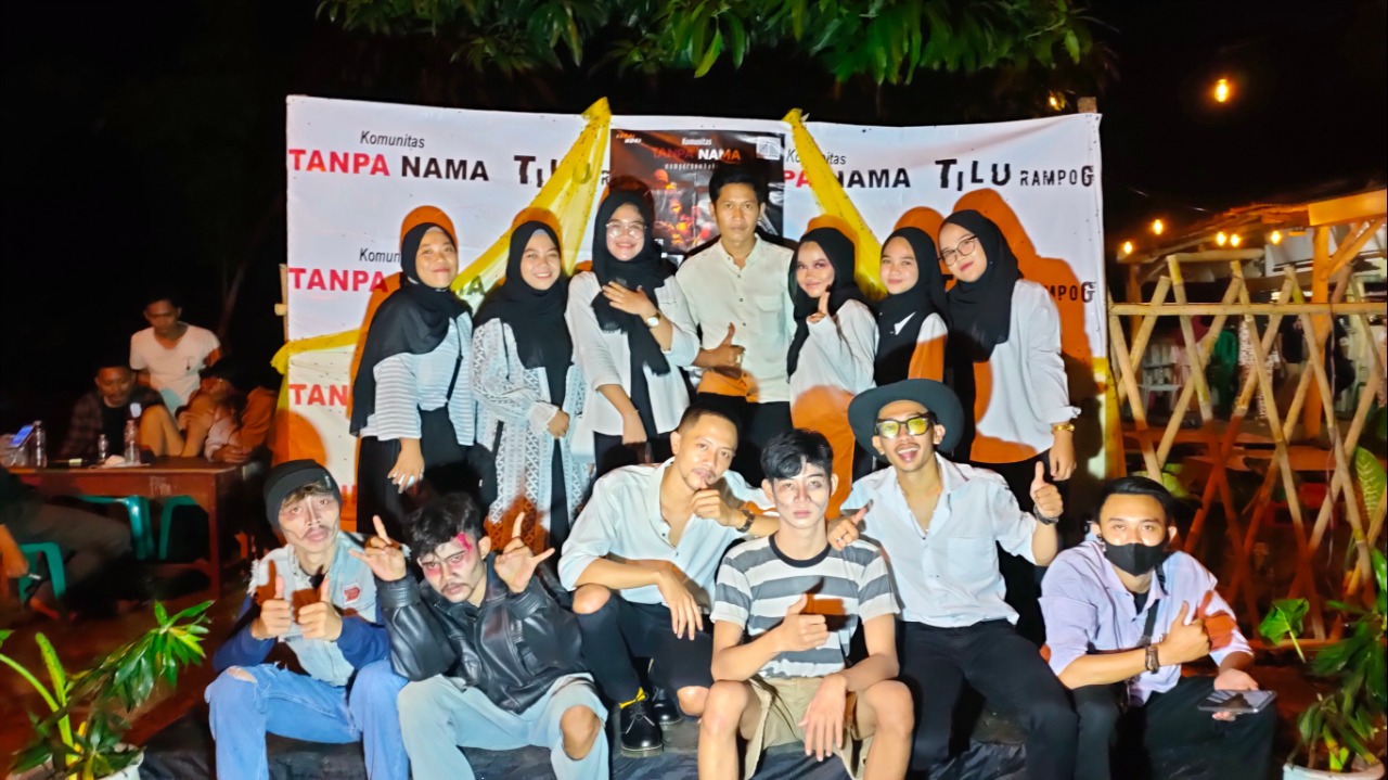 Setelah hampir dua tahun puasa pentas, Komunitas Tanpa Nama akhirnya “buka puasa” dengan menggelar kembali pertunjukan. Pertunjukan ini melibatkan pemuda-pemudi Pulokalapa, Kecamatan Lemahabang, Karawang. Digelar di Kedai Hoki Pulobata, Desa Pulokalapa, Kecamatan Lemahabang, Sabtu (20/11).