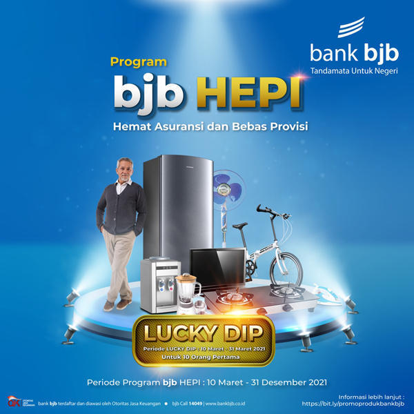 Lucky dip merupakan hadiah yang diberikan kepada 10 debitur baru pertama yang melakukan realisasi baru/take over dari bank lain selama periode program dengan hadiah antara lain: sepeda lipat, TV, microwave, kulkas, kompor gas, blender, kipas angin, sembako, setrika, dispenser. Program bjb Hepi untuk pemberian lucky dip diberlakukan pada 10 Maret-31 Maret 2021. ***