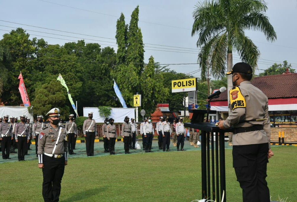 Bertindak sebagai pimpinan apel Kapolresta Cirebon KOMBES Pol M. Syahduddi, S.I.K., M.Si., sedangkan Komandan Apel Kanit Turjawali Sat Lantas Polresta Cirebon AKP Sutarja, S.H.