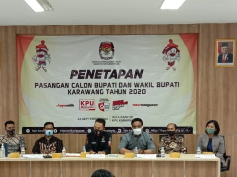 KARAWANG- Komisi Pemilihan Umum (KPU) Kabupaten Karawang secara resmi menetapkan tiga pasangan caĺon (paslon) sebagai calon bupati dan wakil bupati dalam Pilkada tahun 2020, dengan Surat Keputusan KPU Karawang Nomor: 461/HK.04.1-Kpt/3215/KPU-Kab/IX/2020.