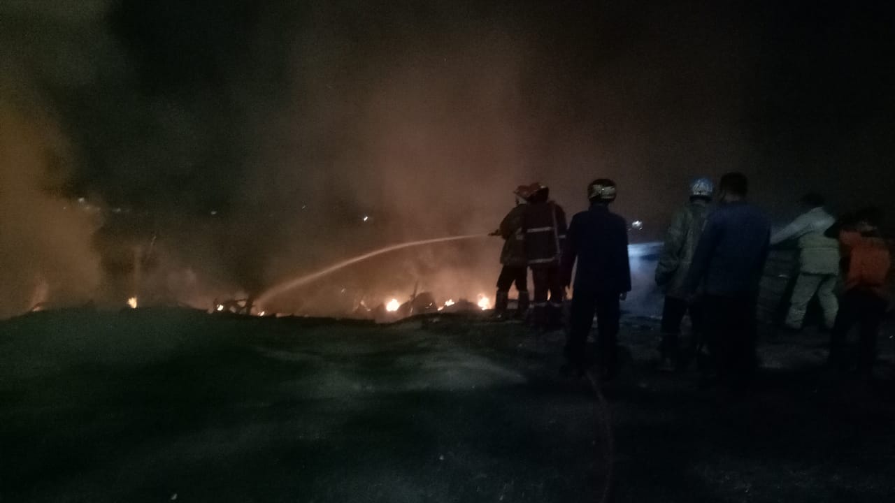 KARAWANG- Tiga kios di Dusun Babaton Desa Sukaharja Kecamatan Telukjambe Timur Kabupaten Karawang Jawa Barat dilalap si jago merah sekira pukul 23.30 WIB, Selasa (22/09/20).