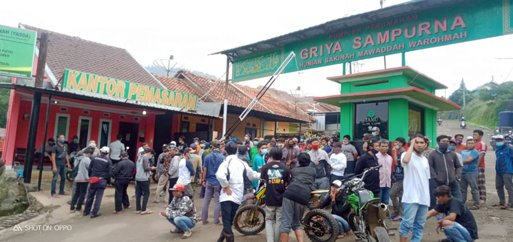 SUMEDANG, eljabar.com — Imbas longsor yang terjadi di Bojongkondang, warga di dua desa mendatangi dua pengembang perumahan. Pertama Warga Perumahan Satria Bumintara Gemilang (SBG) tepatnya di Blok A Jalan Walet dibawah sumber air artesis menyegel kantor pemasaran perumahan SBG di Jalan Raya Parakanmundang di depan Gerbang SBG.