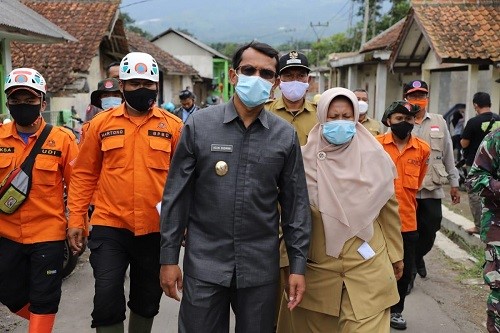 GARUT, Cilawu – Wakil Bupati (Wabup) Garut,dr. Helmi Budiman meninjau 6 titik lokasi yang akan dijadikan tempat relokasi untuk para penyintas pergerakan tanah yang berada di Kampung Cipager, Desa Karya Mekar, Kecamatan Cilawu, Selasa (23/2/2021).