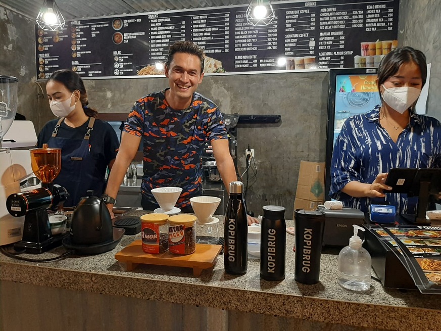 Usaha yang kini ditekuninya adalah membuka kedai kopi atau bahasa kerennya Cafe yang terletak di kawasan Tebet Jakarta Selatan. Cafenya bernama Kopibrug yang diambil dari nama keluarganya Bruggman.