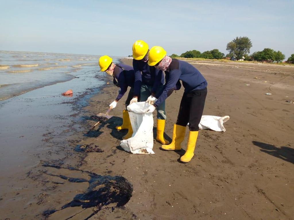 KARAWANG – Pasca kejadian tumpahan minyak di area pantai Karawang, Tim Pertamina Hulu Energi Offshore North West Java (PHE ONWJ) terus bersinergi dengan berbagai pihak untuk membersihkan sisa ceceran minyak.