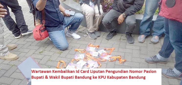 SOREANG – Pengundian nomor Pasangan calon (paslon) Bupati dan Wakil Bupati Bandung.diwarnai aksi pengembalian id card oleh para.wartawan, yang berniat meliput acara tersebut, Kamis (24/9/2020) di Soreang, Kabupaten Bandung, Jawa Barat.