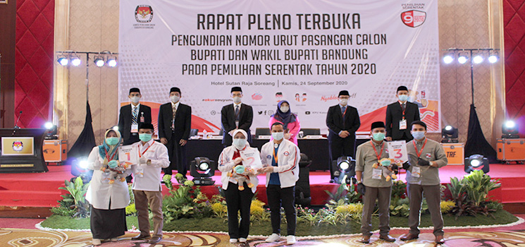 SOREANG – Saling klaim mendapat nomor bagus dilontarkan ke tiga pasangan calon (paslon) Bupati Bandung, usai pengundian nomor urut paslon, Kamis (24/9/2020) di Hotel Sutan Raja, Soreang, Kabupaten Bandung Jawa Barat.