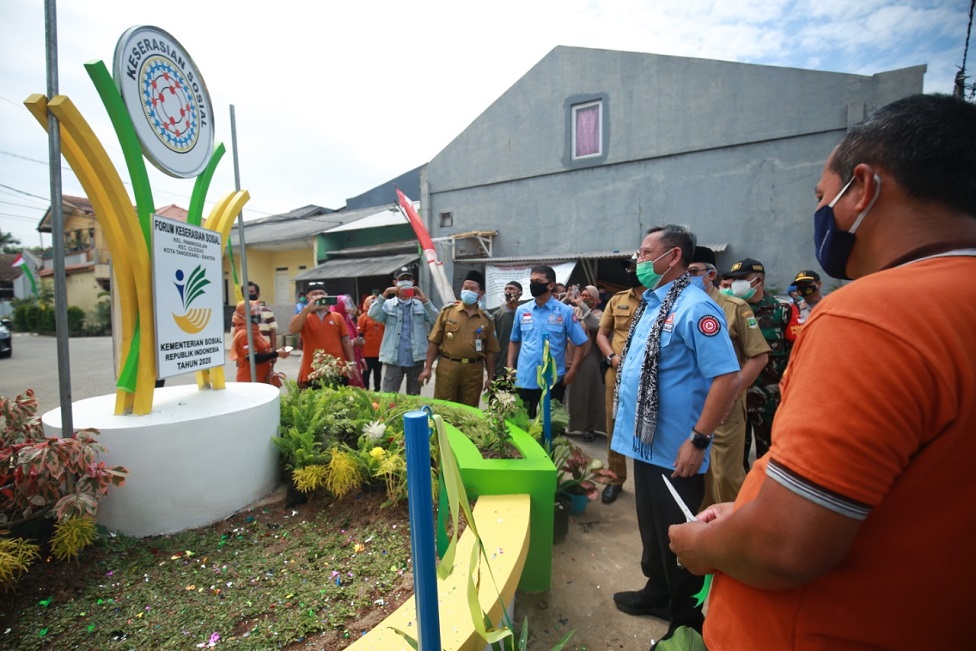 TANGERANG – Dalam rangka meningkatkan mitigasi Bencana sosial, Direktur Jenderal Perlindungan dan Jaminan Sosial, Pepen Nazaruddin, meresmikan Tugu Keserasian Sosial Paninggilan di Kecamatan Ciledug, Kota Tangerang, Selasa (24/11/2020).