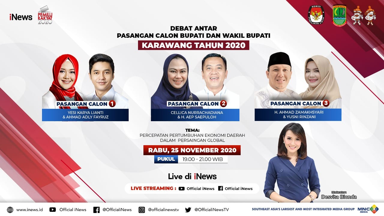 Debat tiga pasangan calon bupati dan wakil bupati Karawang ini mengambil tema “Percepatan Pertumbuhan Ekonomi Daerah Dalam Persaingan Global” dengan moderator Desvita Bionda.
