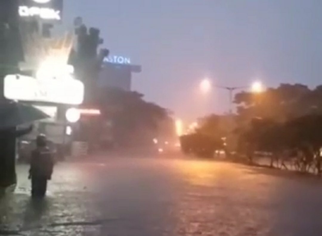 Video tersebut menampilkan satu unit mobil berwarna kuning sampai terbawa arus, begitu pun seorang pengendara sepeda motor.
