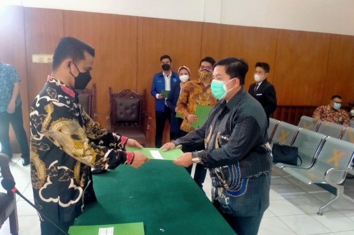 “Dalam penandatanganan Pakta integritas hari ini di hadiri 9 orang yang telah mengikuti Pendidikan Khusus Profesi Mediator (PKPM) yang diselenggarakan oleh lembaga yang terakreditasi oleh Mahkamah Agung”.