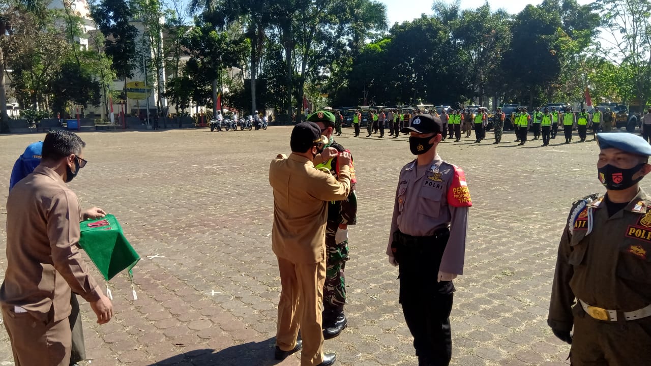 Penyematan pita Peserta Penegak Disiplin Corona oleh Bupati Bandung, H. Dadang M. Naser.