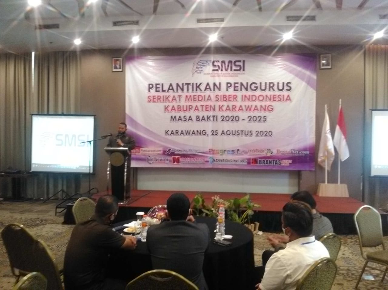 KARAWANG- Pelantikan Pengurus Serikat Media Siber Indonesia (SMSI) Kabupaten Karawang masa bhakti  2020-2025 berjalan sukses dilaksanakan di Hotel Brits , Karawang.Selasa (25/8).