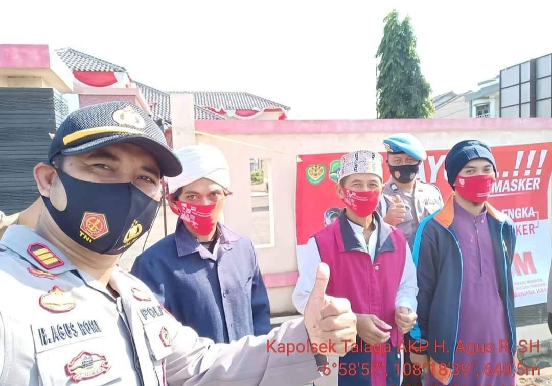 Sosialisasi 3M yang dipimpin langsung oleh Kapolsek Talaga AKP Agus Romy beserta Anggota Polsek Talaga dan diikuti Anggota Koramil, dan Sat Pol PP tersebut disertai pembagian masker kain kepada Pengguna jalan dan warga Masyarakat Kecamatan Talaga.