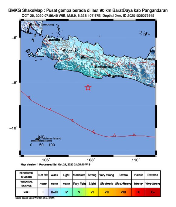 BANDUNG — Gempa magnitudo 5,9 yang mengguncang kawasan Pangandaran pada Minggu (25/10/2020) pagi sempat terasa hingga ke Kota Bandung.